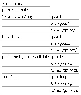 guard [guard guards guarded guarding] noun, verb BrE [ɡɑːd] NAmE [ɡɑːrd]