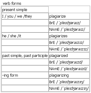 pla·giar·ize (BrE also-ise) [plagiarize plagiarizes plagiarized plagiarizing] BrE [ˈpleɪdʒəraɪz] NAmE [ˈpleɪdʒəraɪz] verb transitive, intransitive ~ (sth) (disapproving) to copy another person's ideas, words or work and pretend that they are your own •He was accused of plagiarizing his colleague's results. Verb forms: