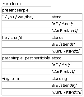 verb (stood, stoodBrE [stʊd] ; NAmE [stʊd] )